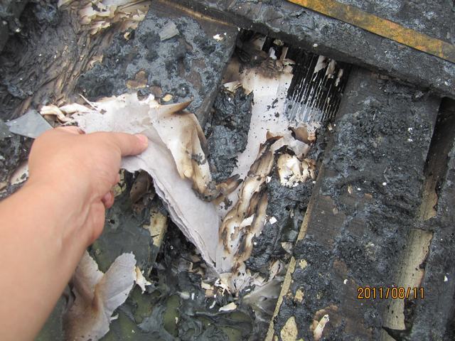 出险原因:轮胎突然自燃,导致车上货物80%烧毁;